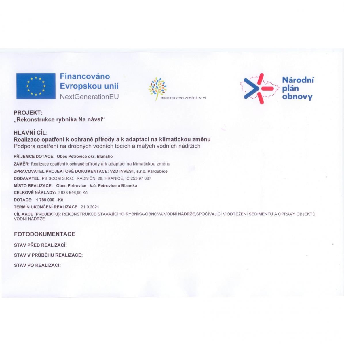 Národní plán obnovy-Rybník